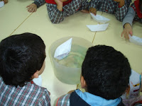 As conclusões não se fizeram esperar: o barco flutuou na água, o papel ficou molhado mas não se desfez e os barcos que tinham desenhos feitos com caneta de feltro largaram cor.